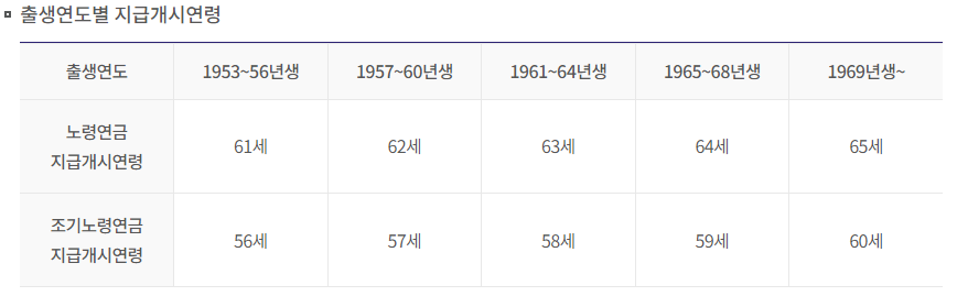 - 정해놓은 국민연금 조기 수령나이를 충족해야 합니다.