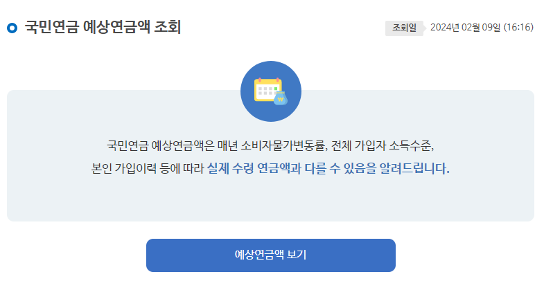 인증을 하는 경우에는 예상연금조회도 조회가 가능합니다.