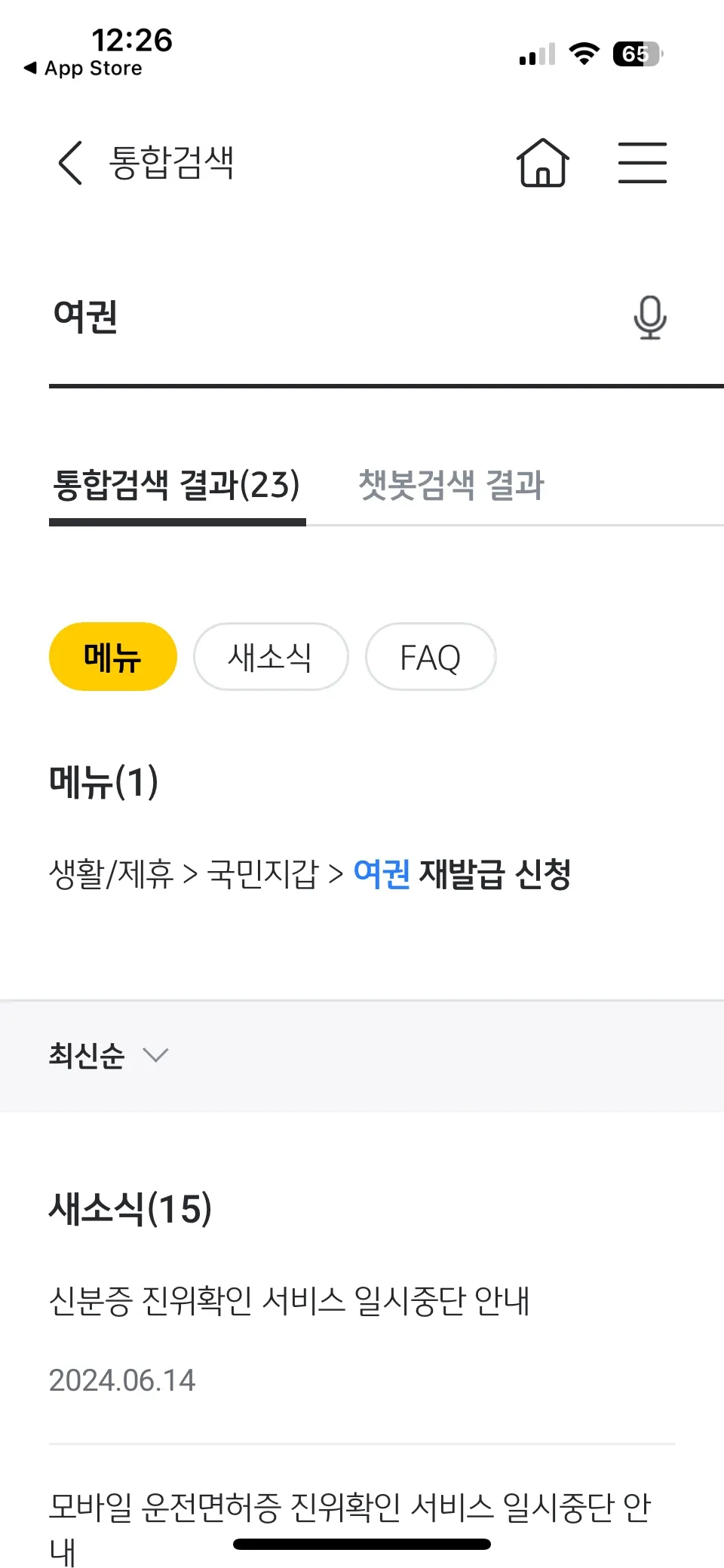 2. 앱 통합검색에서 '여권'으로 검색