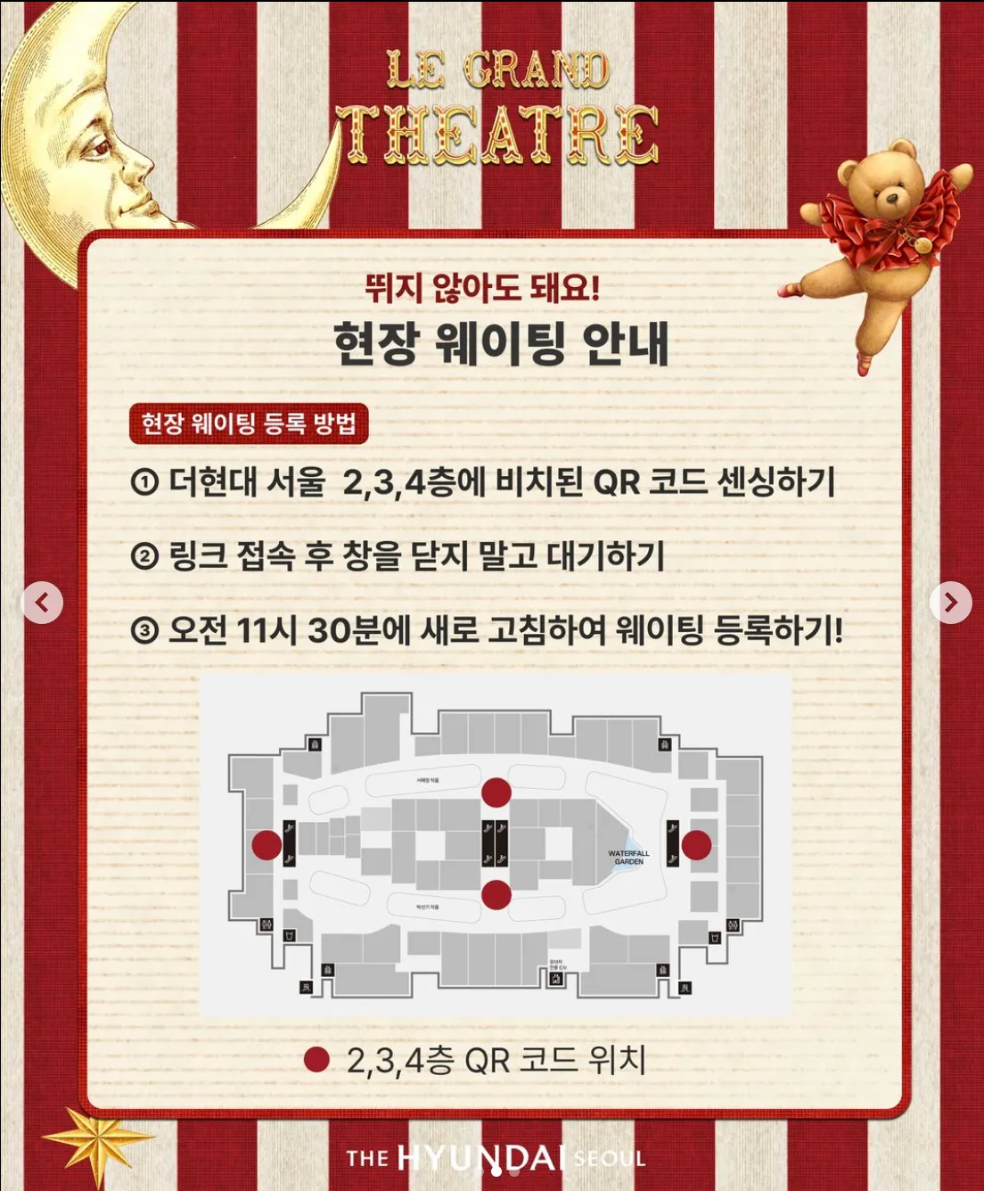 예약은 네이버 예약 시스템을 통해 진행됩니다. 더현대 서울의 카카오채널과 공식 인스타그램에서 예약 링크가 공개되므로, 미리 팔로우하고 알림 설정을 켜두면 편리합니다.