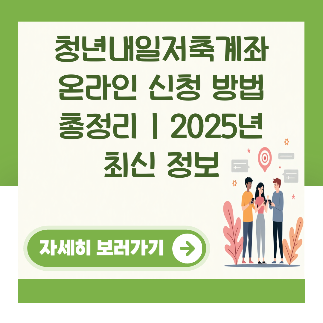 - 청년내일저축계좌 재신청 가능할까? 2025년 기준 완벽 가이드 글 내용 청년내일저축계좌 재신청 가능할까? 2025년 기준 완벽 가이드청년내일저축계좌는 저소득 청년들에게 자산 형성을 지원하는 중요한 정책입니다. 하지만 해지 후 재신청이 가능한지에 대한 의문이 많습니다. 이 글에서는 청년내일저축계좌의 재신청 가능 여부와 관련된 모든 정보를 정리해 드립니다. 이 글을 통해 청년내일저축계좌의 조건과 재신청 절차를 명확히 이해할 수 있습니다. 청년내일저축계좌 더 알아보기 청년내일저축계좌 요약 항목 내용 가입 대상 만 19세 이상 ~ 만 34세 이하의 저소득 청년 .. 좋아요 0 댓글 0 작성시간 3분 전
