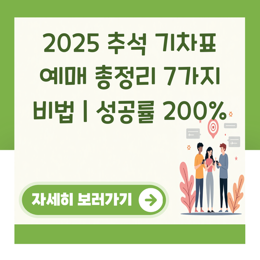 민족 대명절 추석, 사랑하는 가족들과 함께하기 위해 필수적인 관문이 바로 기차표 예매입니다. 매년 반복되는 '피켓팅' 전쟁에 지쳐 계신가요? 기업의 비효율적인 프로세스를 개선하듯, 명절 기차표 예매도 전략적인 접근이 필요합니다. 오늘 이 글을 통해 2025 추석 기차표 예매에 성공하는 실전 비법을 얻어가세요. 불필요한 시행착오 없이 원하는 기차표를 손에 넣을 수 있도록, 기업 컨설턴트의 시선으로 핵심 노하우를 전달해 드립니다.
